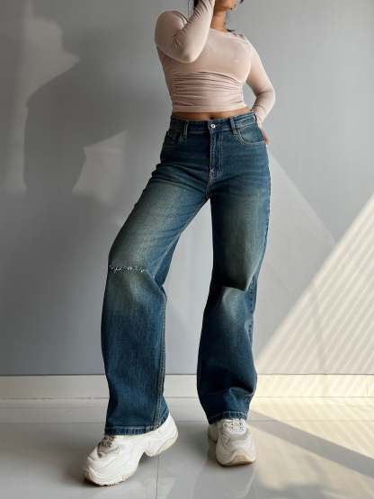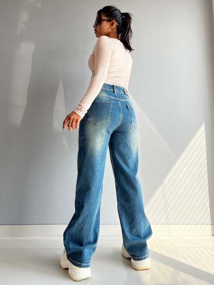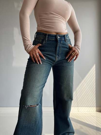 Our 90's Blue Ripped Baggy fit Jeans are perfect for any occasion. Designed with stretch denim for an extra comfortable fit, these jeans will be your go-to for everything from weekend wear to a night out. Get your pair now.